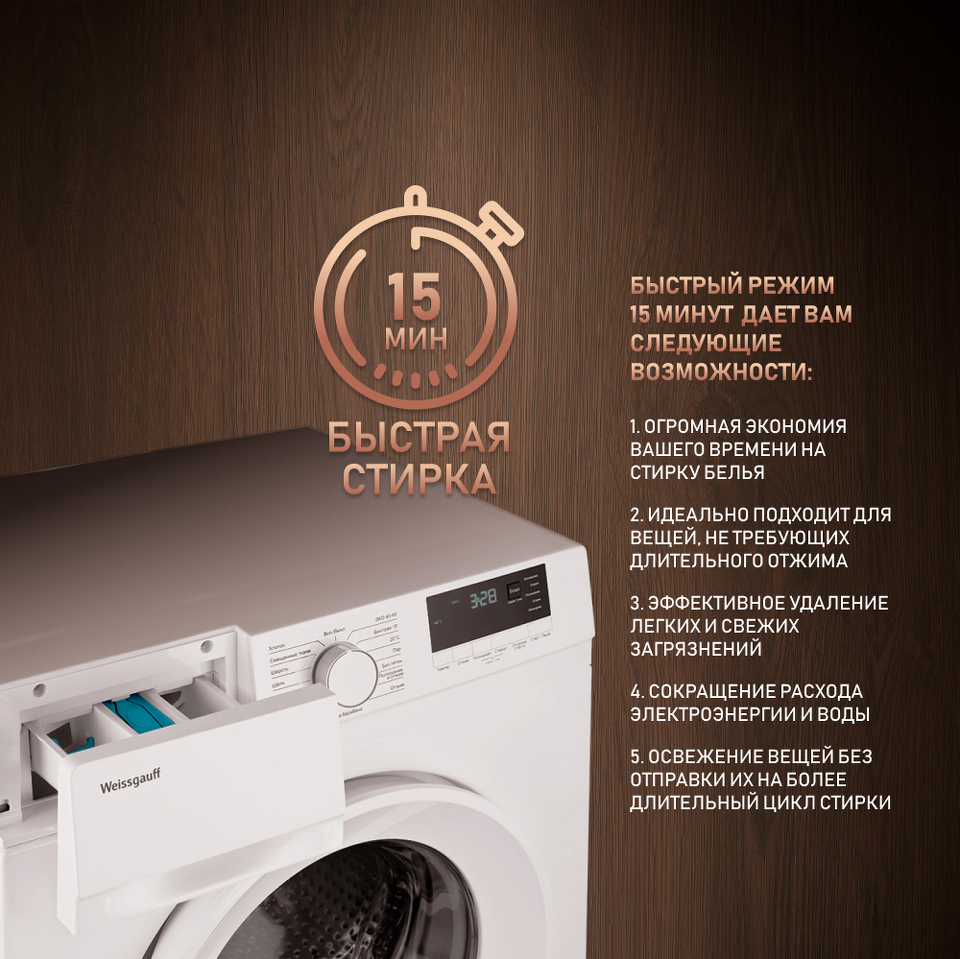 Режим Быстрая стирка 15 минут - это по-настоящему фантастическая программа для тех, кто умеет ценить своё время!