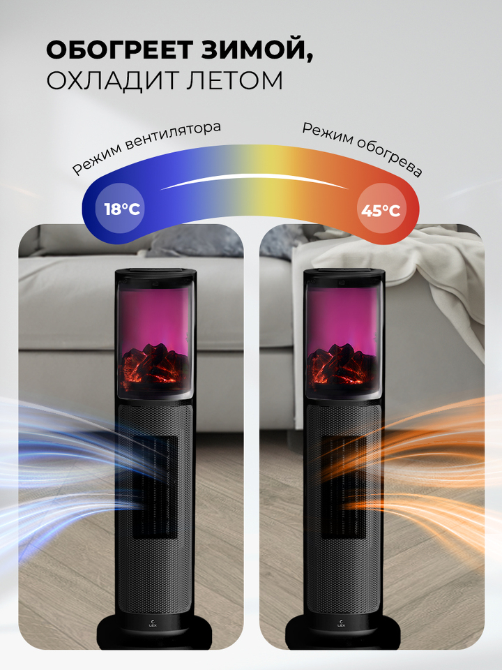 Фото Вентилятор Lex LXCR 1525,обогреватель керамический, с очагом 2000Вт ( черный)