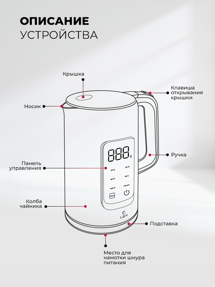 Фото Чайник Lex LXK 30025-1, чайник стальной с двойнами стенками ( белый)
