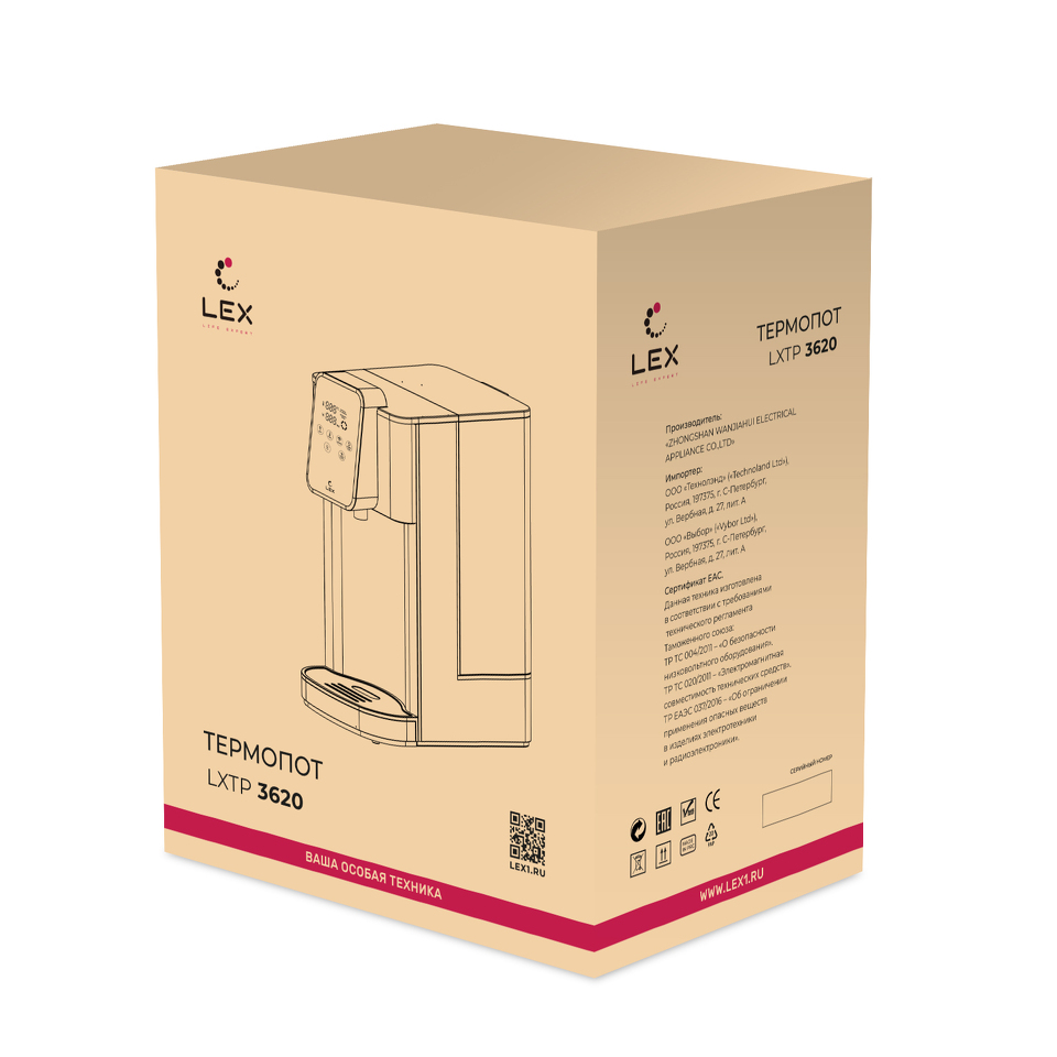 Lex LXTP 3620, термопот, 4литра (черный + брашированная сталь)