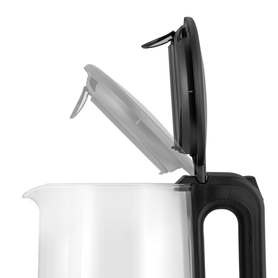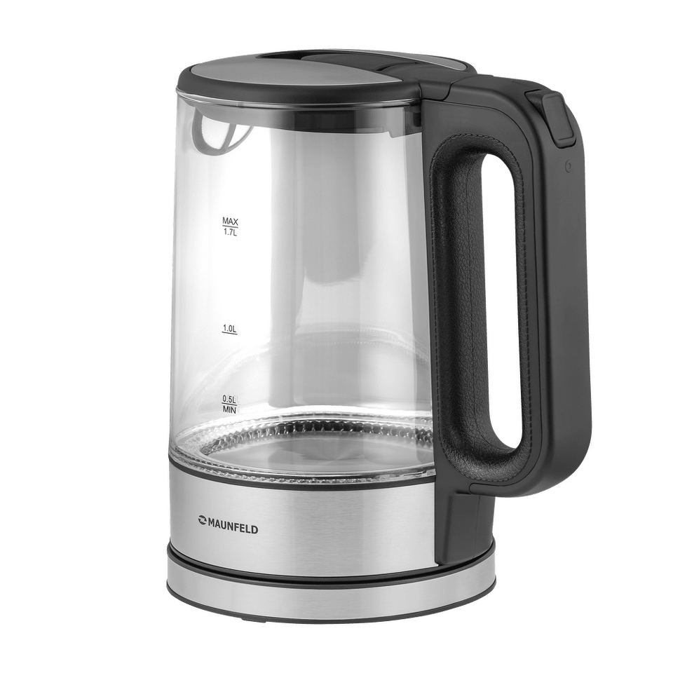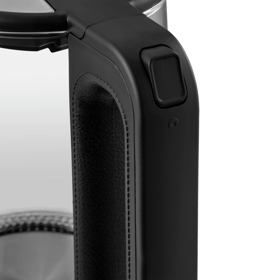 Элегантный чайник мощностью 2 200 Вт и объемом 1,7 л представляет собой идеальную комбинацию металлического основания и колбы из жаропрочного стекла.