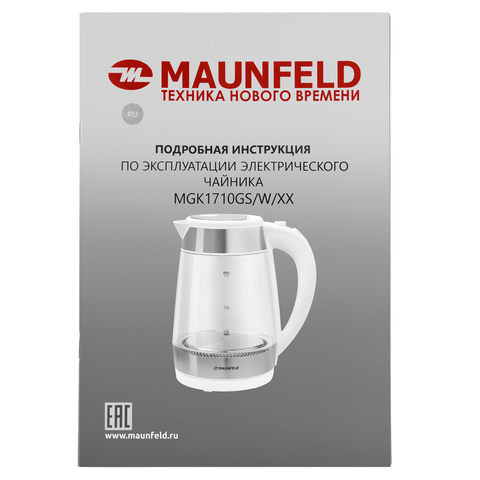Элегантный чайник выполнен из жаропрочного боросиликатного стекла и металла. Светодиодная подсветка голубого цвета вокруг нагревательного элемента.