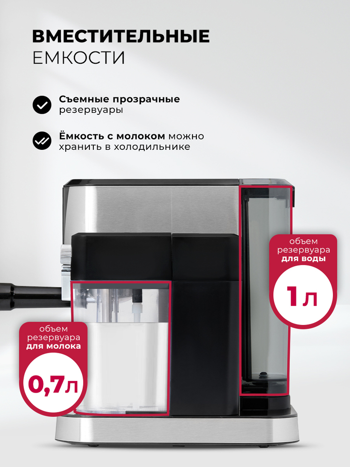 Рожок с держателем фильтра, Мерная ложка с уплотнителем молотого кофе, Металлические фильтры для кофе (малый, большой)