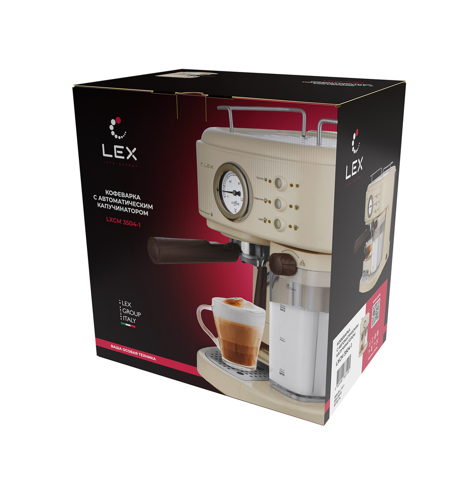 Фото Кофеварка Lex LXCM 3504-1, кофеварка с капучинатором и с контейнером для молока (бежевая)