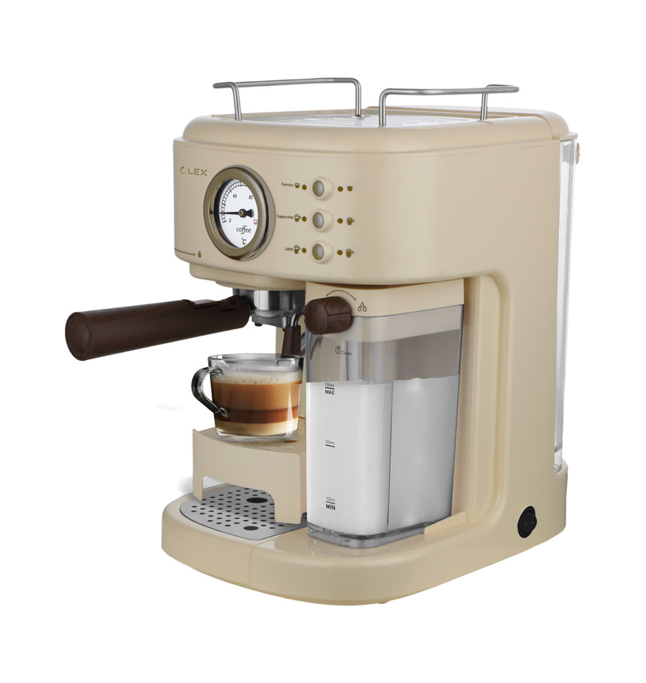 Кофеварка Lex LXCM 3504-1, кофеварка с капучинатором и с контейнером для молока (бежевая)