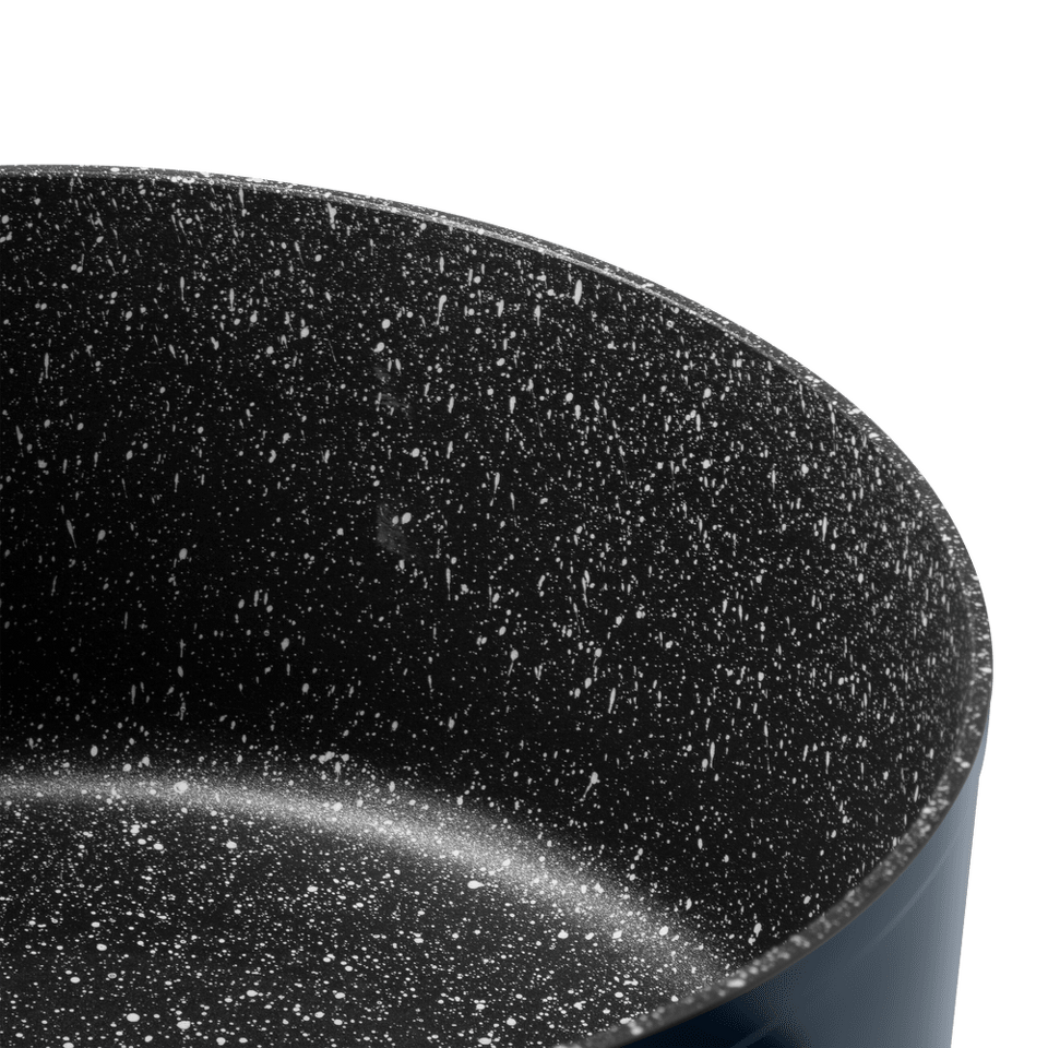 Мраморное антипригарное покрытие абсолютно инертно —это гарантирует, что в пищу не попадет никаких вредных примесей и веществ даже при воздействии очень высоких температур. Поверхность посуды не подвержена загрязнениям и не впитывает запахи.