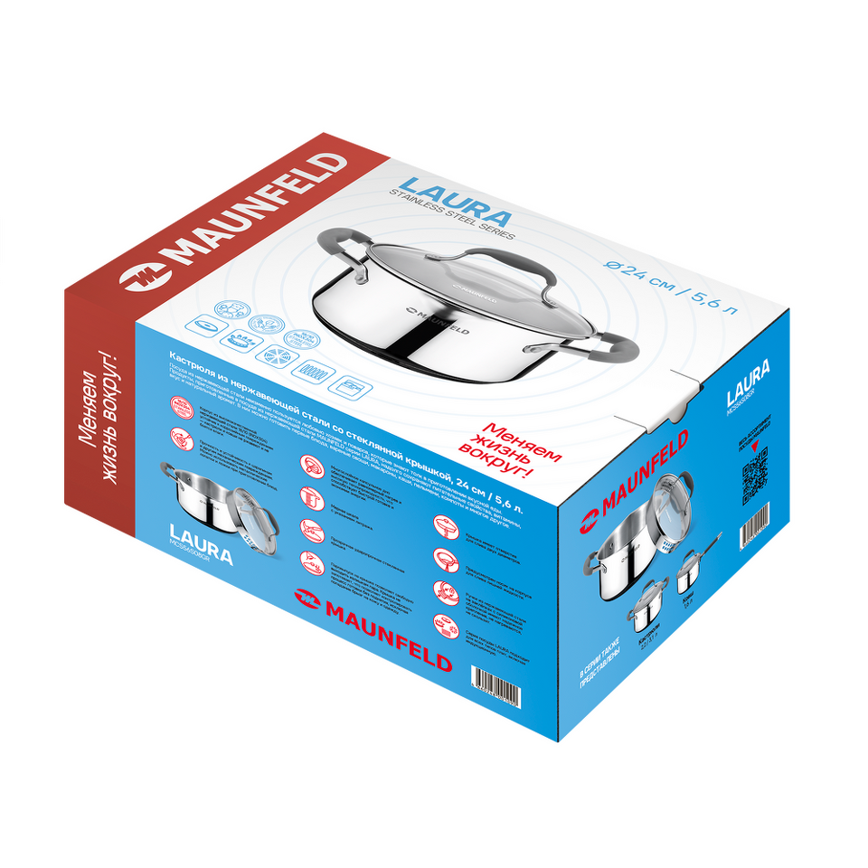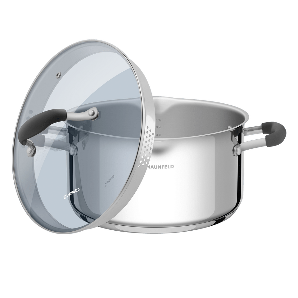 Посуда из нержавеющей стали неизменно пользуется любовью хозяек и поваров, которые знают толк в приготовлении вкусной еды. Продукты, приготовленные в посуде MAUNFELD серии LAURA из нержавеющей стали, надолго сохраняют питательные свойства, витамины, натуральный аромат и вкус приготовленных блюд. В них можно готовить первые блюда, вареные овощи, макароны, каши, пельмени, компоты и многое другое.