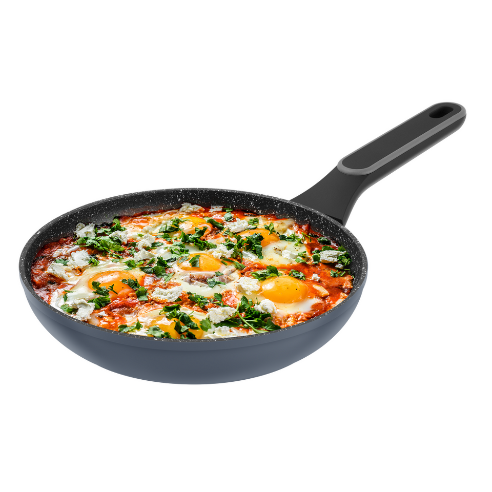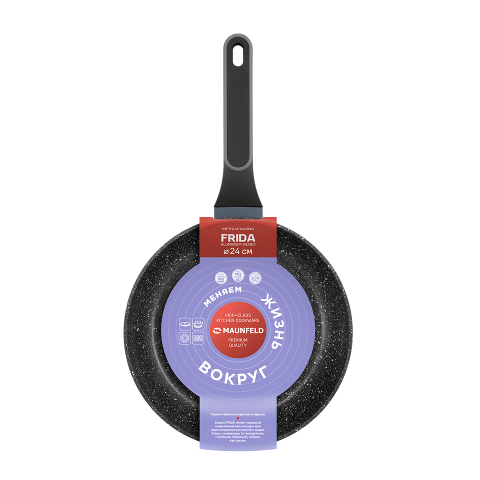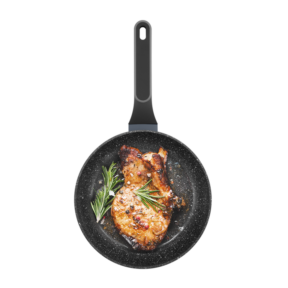 Мраморное антипригарное покрытие абсолютно инертно — это гарантирует, что в пищу не попадет никаких вредных примесей и веществ даже при воздействии очень высоких температур. Поверхность посуды не подвержена загрязнениям и не впитывает запахи.