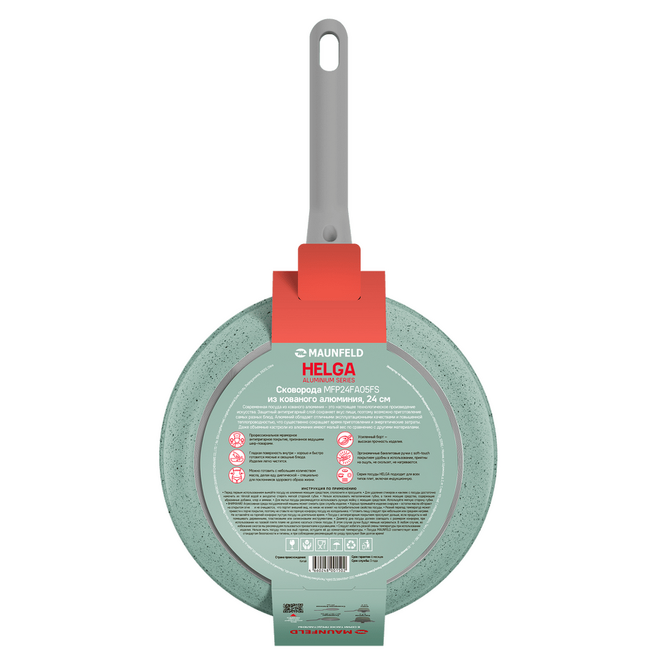 Профессиональная удлиненная ручка soft touch (приятная на ощупь) из специального термостойкого пластика бакелит. Длина ручки позволяет хозяйкам готовить, не опасаясь обжечься. Ручка не нагревается.