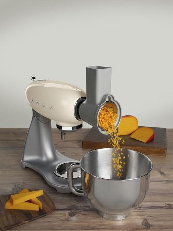 Дополнительный аксессуар для планетарных миксеров SMEG серии SMF01, позволяет вам натереть или нарезать ингридиенты прямо в рядом стоящую миску. Многофункциональная насадка слайсер/терка В комплекте 4 барабана из нержавеющей стали для натирания и нарезки: крупная терка — 1 шт, мелкая терка — 1 шт, средняя нарезка — 1 шт, мелкая нарезка — 1 шт.