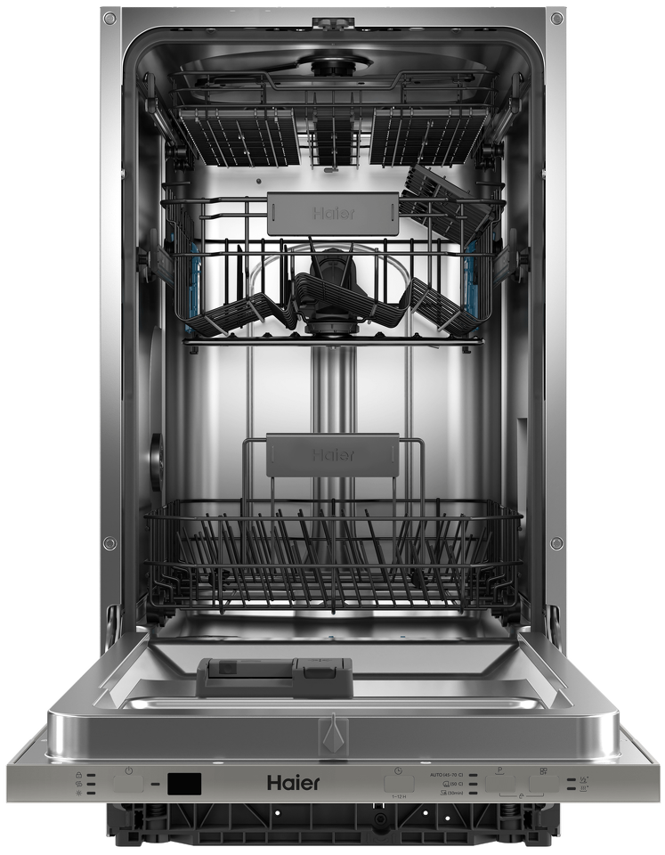Haier HDWE10-395RU — узкая встраиваемая посудомоечная машина шириной 45 см, которая избавит от необходимости мыть посуду вручную и сэкономит место на кухне. При этом она имеет довольно большую вместимость — до 10 комплектов посуды, что отлично подойдет как для повседневного использования, так и для уборки после гостей. В машине максимально эффективно организовано внутреннее пространство. Есть удобная выдвижная верхняя корзина для столовых приборов и мелкой утвари. Средняя корзина — с изменяемой высотой установки, чтобы можно было мыть посуду разного размера и объёмов. Более того, в данной модели есть подсветка в рабочей камере: даже мелкие предметы не останутся незамеченными при загрузке и выгрузке посуды. Предусмотрены несколько программ мытья для посуды разного типа и степени загрязнения. Среди них автоматическая: машина сама оптимизирует цикл мытья, в зависимости от загрузки и степени загрязнения посуды. Благодаря световой индикации — технология «луч на полу» — всегда понятно на каком этапе цикл мытья, закончился он или нет. Посудомоечная машина Haier HDWE10-395RU — помоет посуду без вашего участия, освобождая время для более приятных занятий.