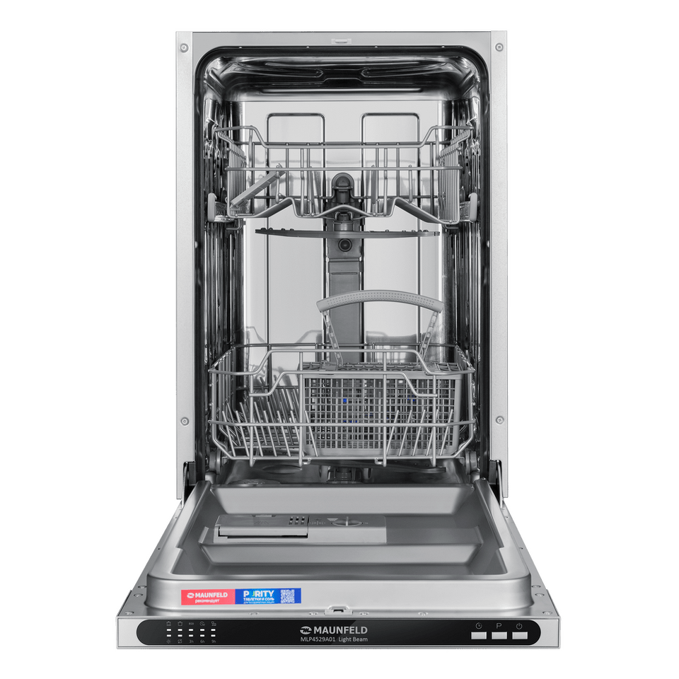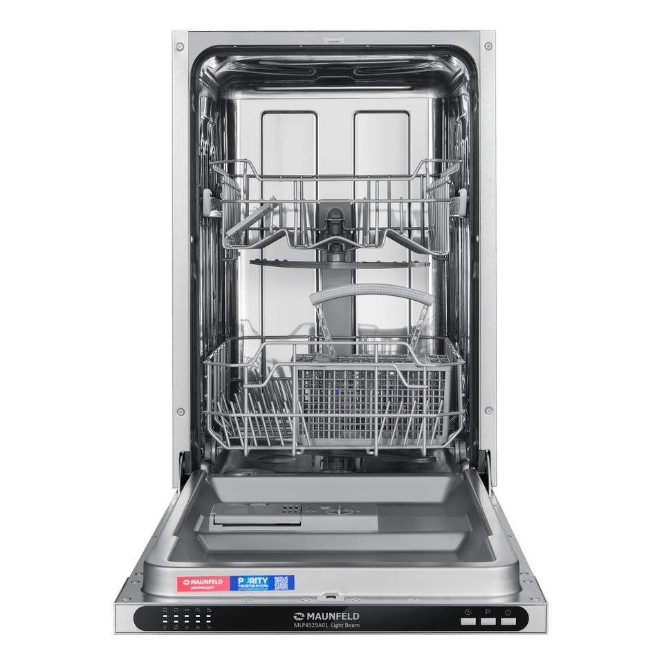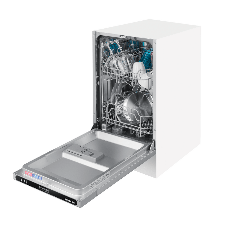 В посудомоечную машину помещается много посуды. Можно накопить её в течение дня или помыть сразу всё после семейного торжества или вечеринки с друзьями. Вместимость — до 9 комплектов посуды.