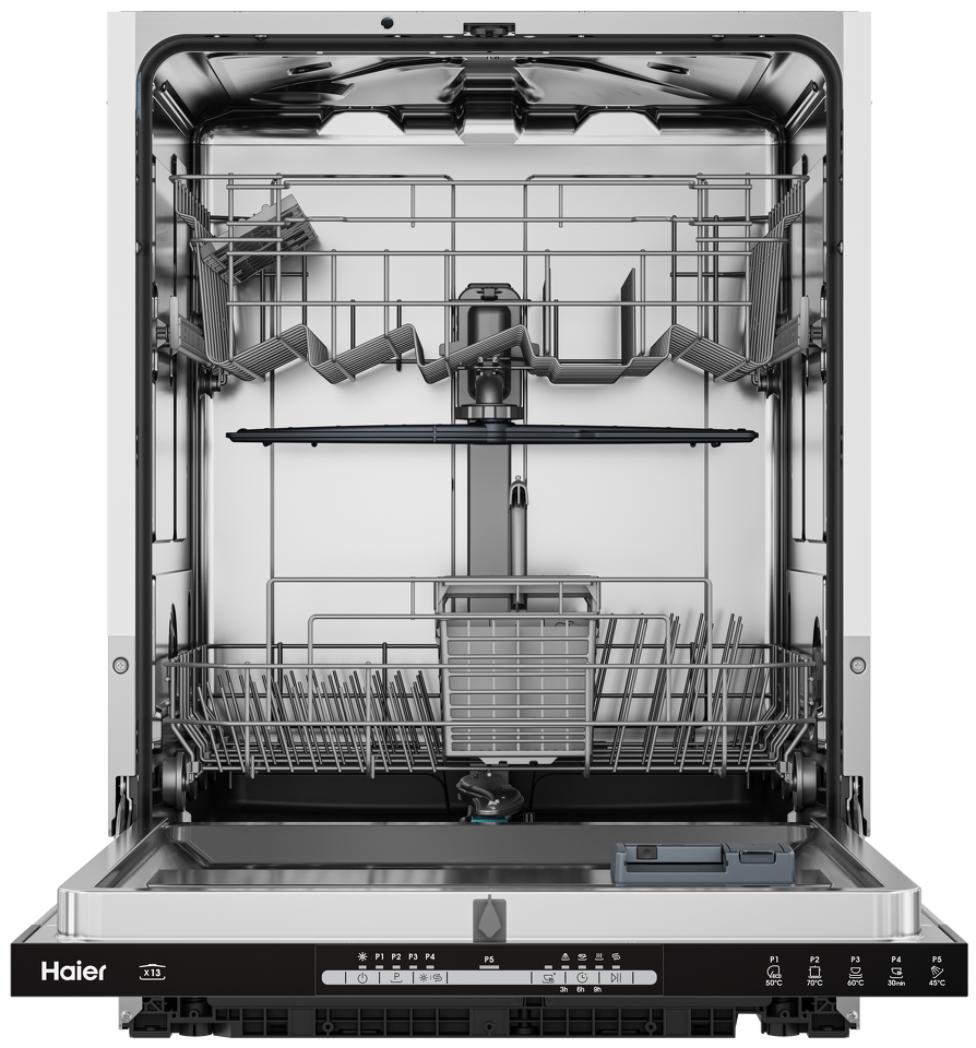 Полноразмерная встраиваемая посудомоечная машина шириной 60 см HDWE13-490RU рассчитана на загрузку до 13 стандартных комплектов посуды, что отлично подойдет для большой семьи и для любителей готовить. Удобный набор программ включает в себя стандартный, ЭКО и интенсивный режимы, а также отдельное полоскание и быструю программу для случая, когда нужно сэкономить время мытья посуды. Фильтр в данной модели изготовлен из специального антибактериального материала, и это препятствует размножению бактерий в местах потенциального скопления остатков пищи. Еще одна особенность конструкции этой посудомоечной машинки: дно внутренней камеры изготовлено из специального термоустойчивого и экологичного пластика.