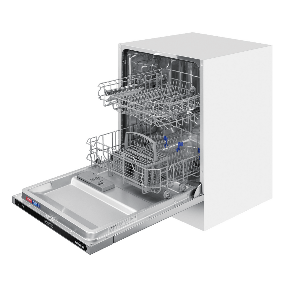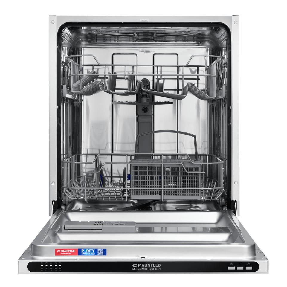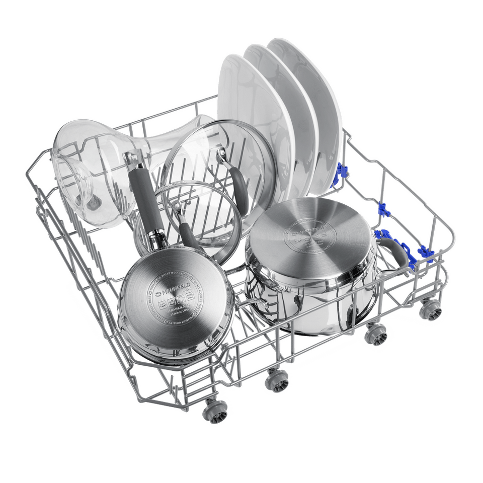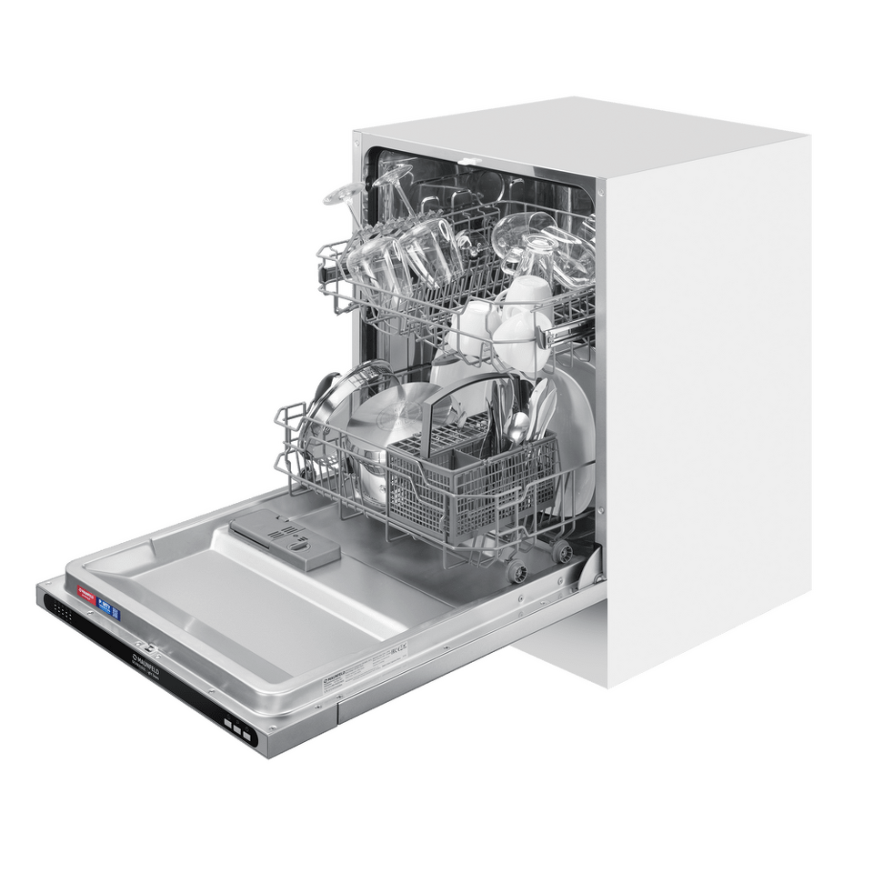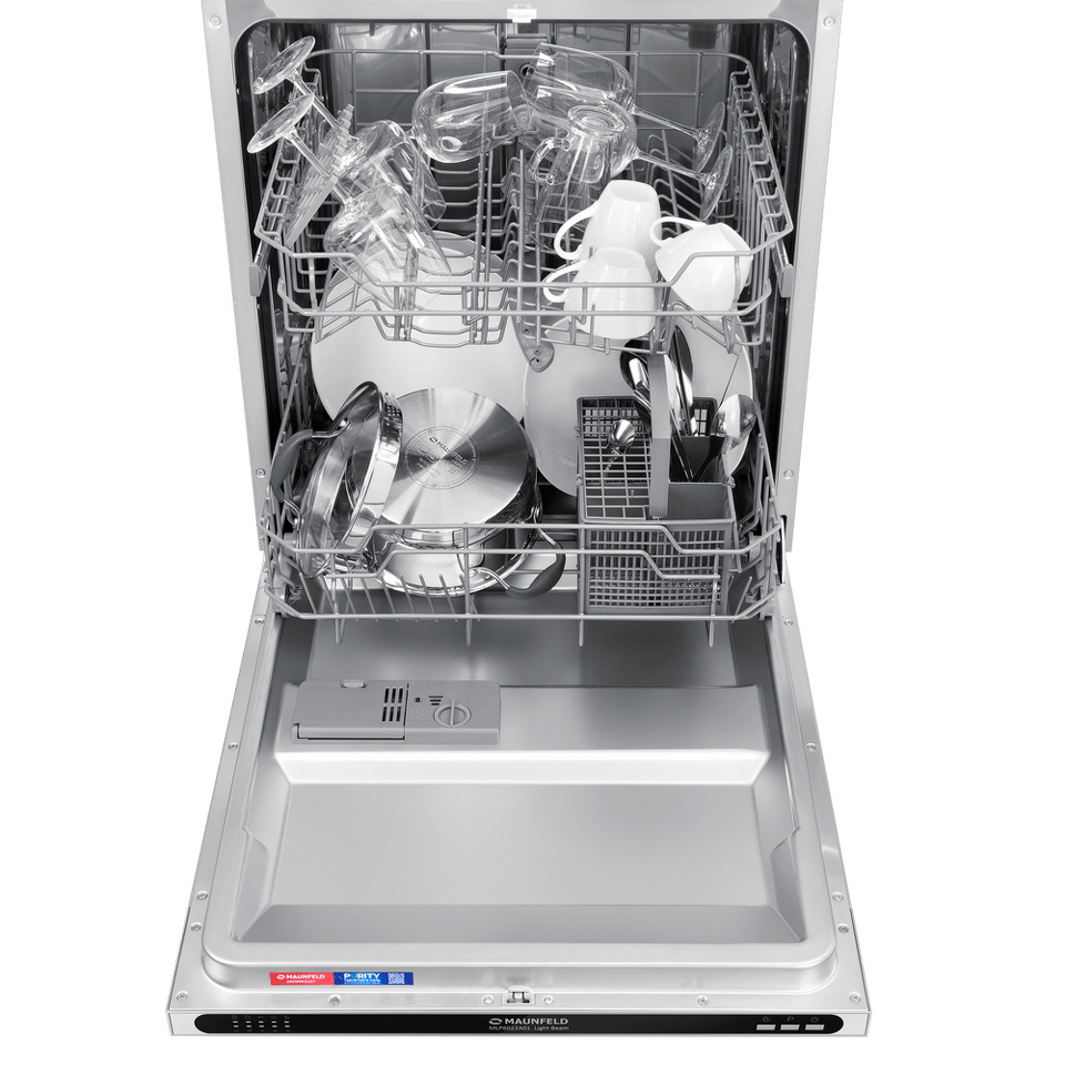 В посудомоечную машину помещается много посуды. Можно накопить её в течение дня или помыть сразу всё после семейного торжества или вечеринки с друзьями. Вместимость — до 12 комплектов посуды.