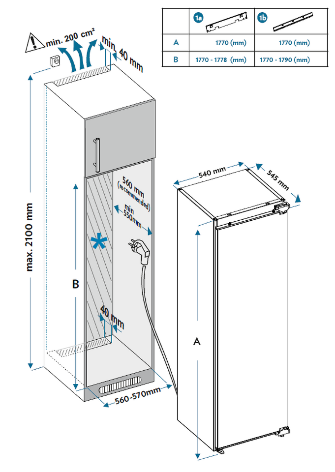 Габариты устройства 540 х 545 х 1770 мм - это оптимальные параметры, при выборе которых инженеры Weissgauff руководствовались целью создать для вас максимально компактный и функциональный морозильник, который при этом окажется удобен в установке!