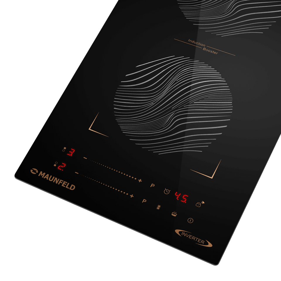 Индукционная варочная поверхность нового поколения с инверторным способом нагрева, технологией Bridge Induction объединение варочный зон и быстрым нагревом Booster.