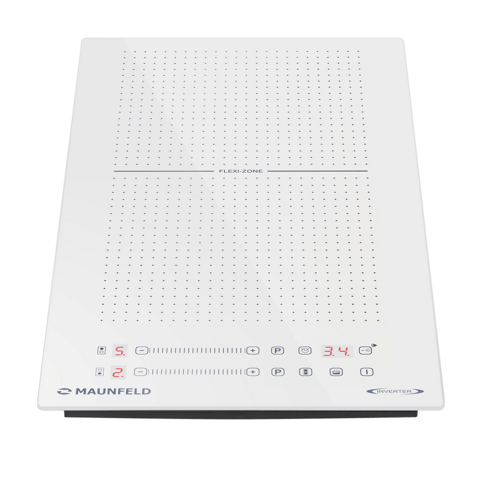 Flex Zone — представляет собой инновационную систему индукционных конфорок, которая обеспечивает полную свободу в использовании посуды любого размера, от турки до казана. Плита для нагрева задействует только ту поверхность, с которой соприкасается дно посуды и только там где вы ее поставили.