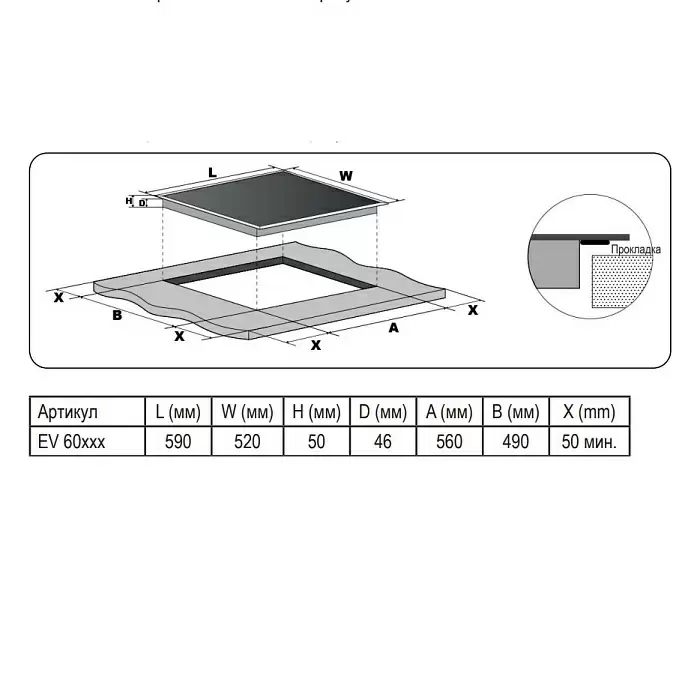 Размер варочной панели 60см