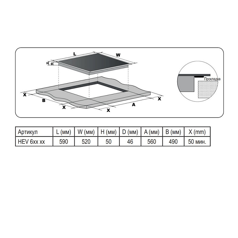 Размер варочной панели 60см