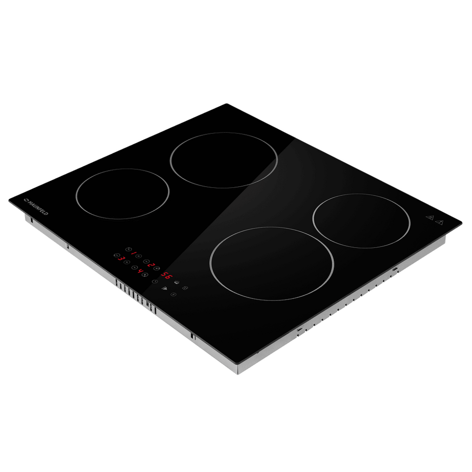 Стильная электрическая встраиваемая варочная панель шириной 59 см выполнена из ударопрочной стеклокерамики черного цвета. Благодаря идеальной гладкости и высокой износостойкости она легко очищается.