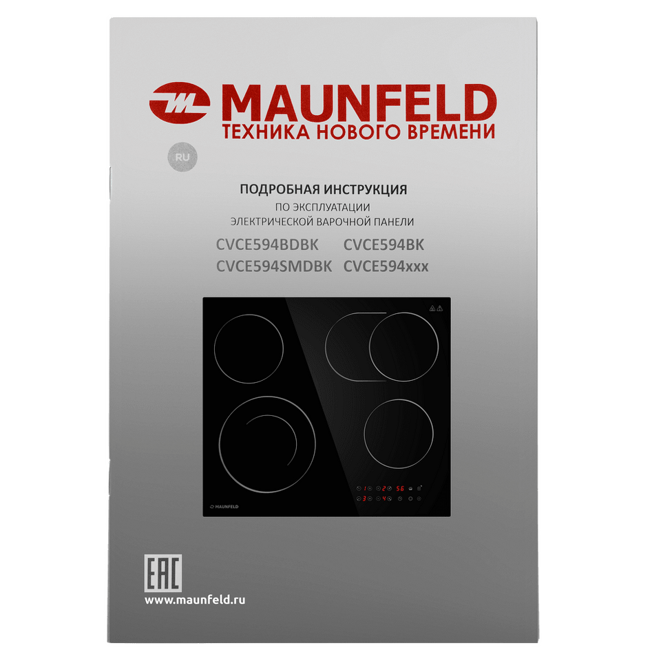 Hi-Light конфорки, установленные в этой модели, очень быстро нагреваются. Предусмотрены следующие конфорки: две с мощностью по 1200 Вт (d=165 мм), одна с мощностью 1100/2200 Вт (d=230 мм) и одна с мощностью 1000/2000 Вт (d=270 мм).