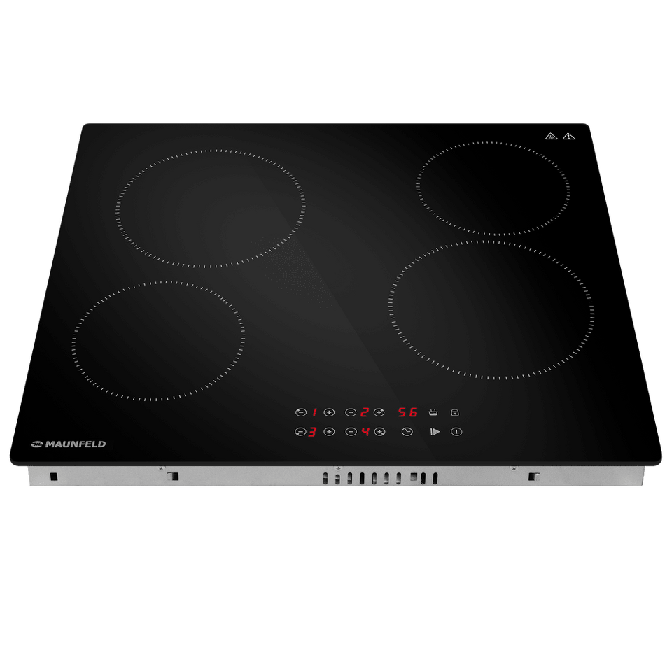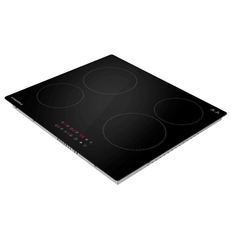 Стильная электрическая встраиваемая варочная панель шириной 59 см выполнена из ударопрочной стеклокерамики черного цвета. Благодаря идеальной гладкости и высокой износостойкости она легко очищается.