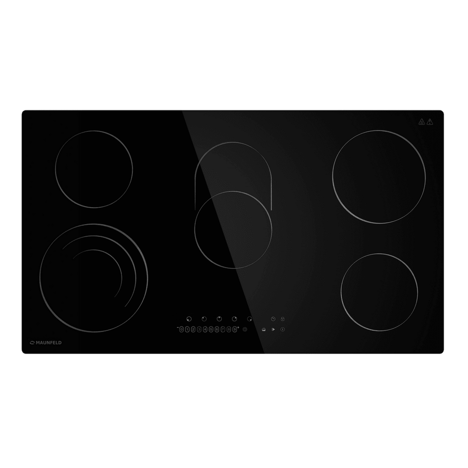 Стильная электрическая встраиваемая варочная панель шириной 90 см выполнена из ударопрочной стеклокерамики черного цвета. Благодаря идеальной гладкости и высокой износостойкости она легко очищается.