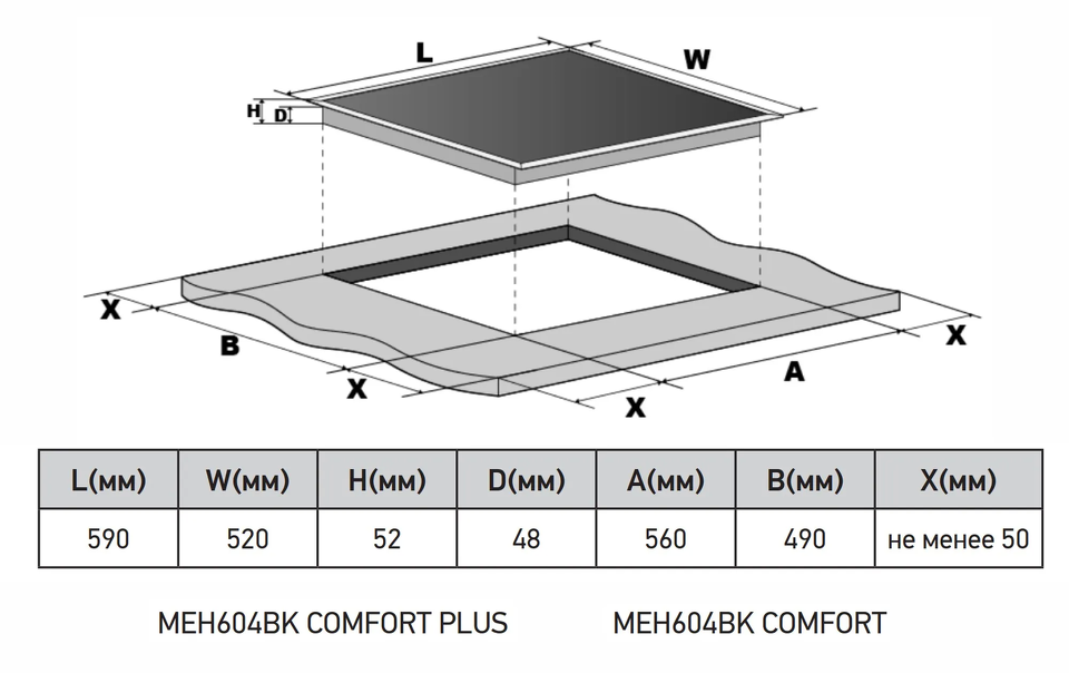 Размер варочной панели 60см