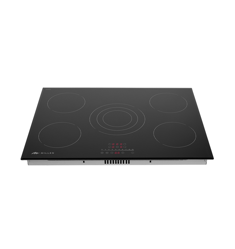 Самая мощная модель в линейке электрических варочных поверхностей бренда MILLEN имеет 5 зон нагрева, нестандартные размеры для встраивания и предназначена для просторной кухни.