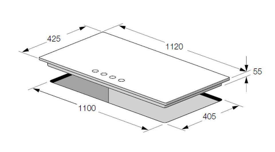 - 4 конфорки, расположенные в одну линию, в т.ч. 2 конфорки WOK (4,0 кВт)