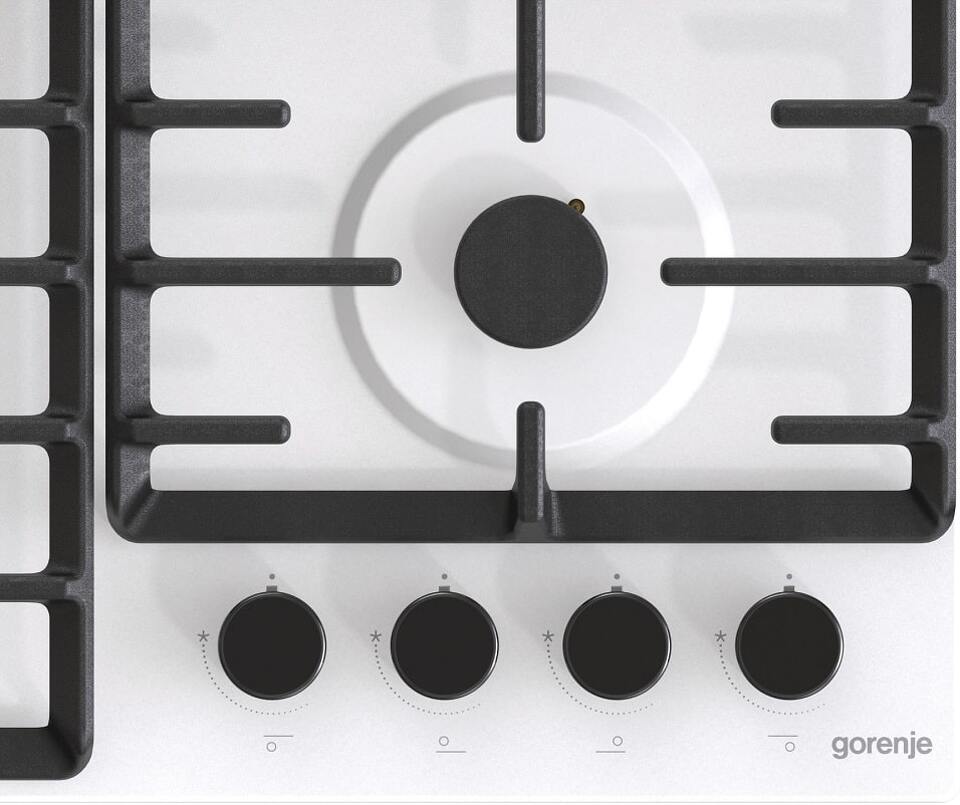 Независимая газовая варочная панель Gorenje GW642SYW относится к новому типу приборов. Она отличается эргономичностью и хорошим функционалом для своего вида техники. Так, например, у данной и схожих моделей, удобная система управления. Такое решение позволяет её устанавливать в столешницу не у самого края. Даже его работают все конфорки, ручки остаются прохладными и риск обжечься о них минимизирован. Рядом с ними нанесены интуитивно понятные обозначения, помогающие регулировать интенсивность нагрева.