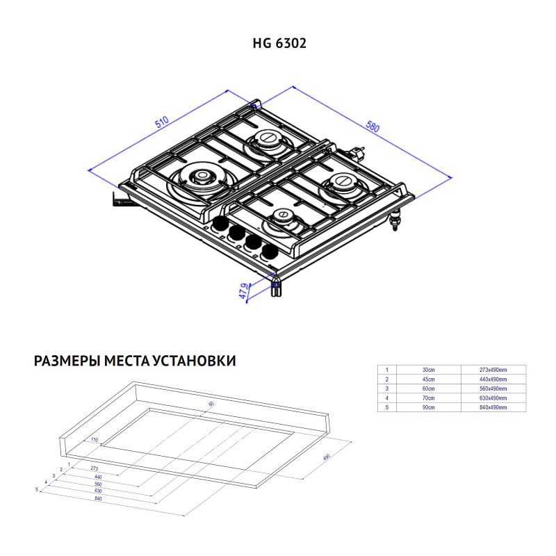 Размер варочной панели 60см