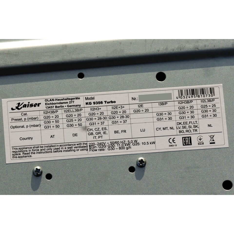 По умолчанию завод настроен на природный газ, а также может работать на сжиженном газе / пропане. Сопла жидкого газа для 30 мбар и 50 мбар включены.