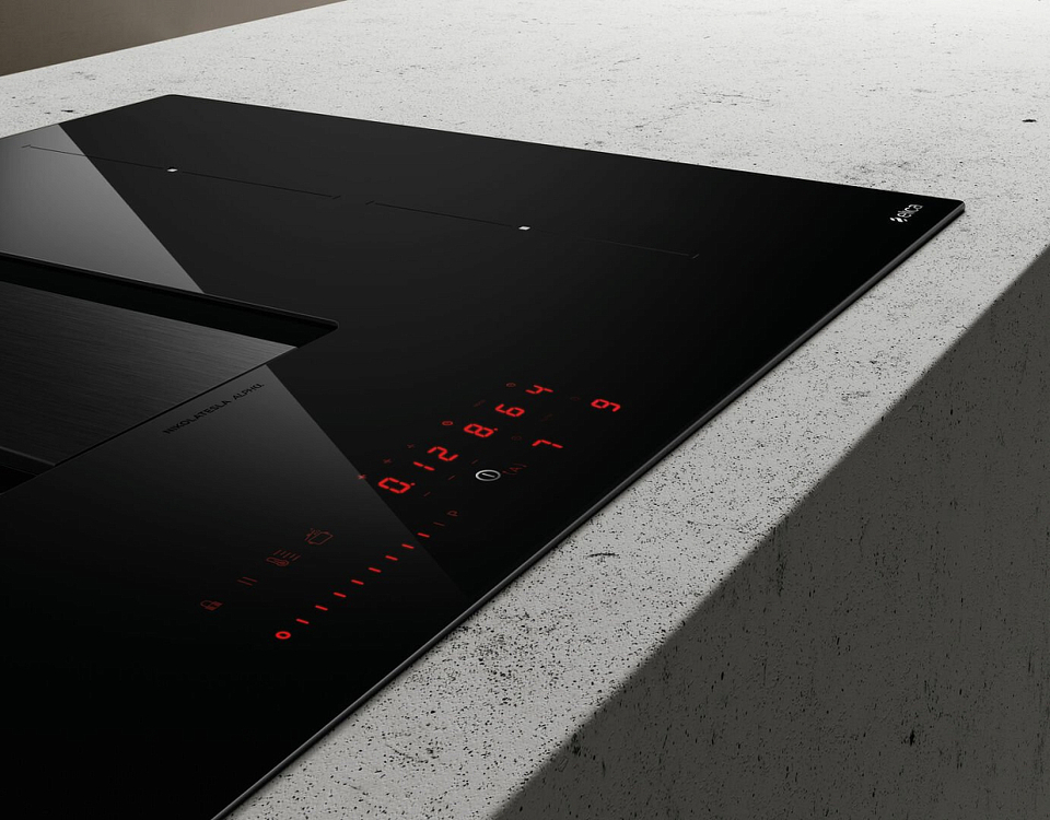 Варочная панель с вытяжкой Elica NIKOLATESLA ALPHA BL/A/78 выполнена из черного стекла. Минималистский стиль дополнен алюминиевой отделкой с изысканными элементами, что делает прибор высокоэффективным как в качестве варочной панели, так и в качестве вытяжки. Очень простая установка является одной из ключевых особенностей. Она может быть реализована при полной безопасности всего за несколько шагов. У данного устройства есть 9 уровней мощности нагрева, что упрощает приготовление и разогревание различных блюд. Вытяжка имеет 4 уровня скорости работы, а также Интенсивный режим. Благодаря инновационной функции Autocapture, устройство автоматически регулирует мощность вытяжки, определяя работающие конфорки и устанавливая наиболее подходящий уровень улавливания дыма и запаха. На максимальной скорости технология Comfort Silence гарантирует минимальный уровень шума всего 61 дБ. Функция «Пауза» позволяет приостановить любую активную функцию на варочной панели с уменьшением мощности до ноля. Таймер можно задать в каждой варочной зоне, в том числе и одновременно. В конце заданного периода происходит выключение конфорок, предупреждая звуковым сигналом.