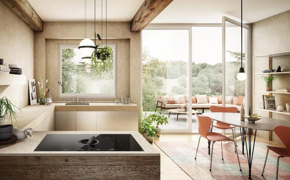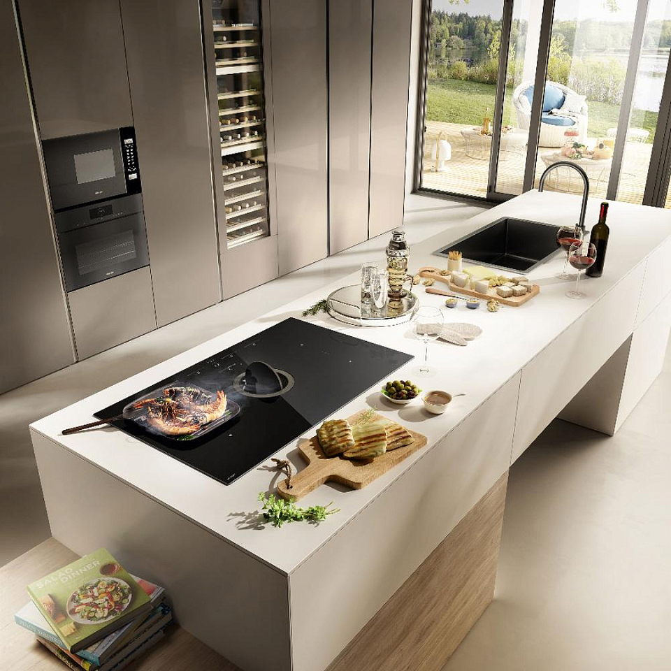 Габариты панели составляют 51.5 см в высоту, 83 см в ширину и 21 см в глубину, что позволяет встроить ее вровень со столешницей, создавая гармоничное пространство на кухне. При этом размер ниши для встраивания составляет 80.7×49.2 см. Панель оснащена четырьмя зонами приготовления, каждая из которых имеет мощность от 2.1 до 3 кВт и диаметр 21×19.1 см. Благодаря функции Bridge, можно объединить две зоны для приготовления блюд в большой посуде. Встроенная вытяжка с максимальной производительностью в режиме отвода 620 м³/ч и в режиме рециркуляции 600 м³/ч обеспечивает быстрое и эффективное удаление запахов и влаги.