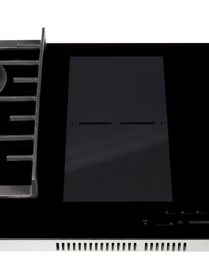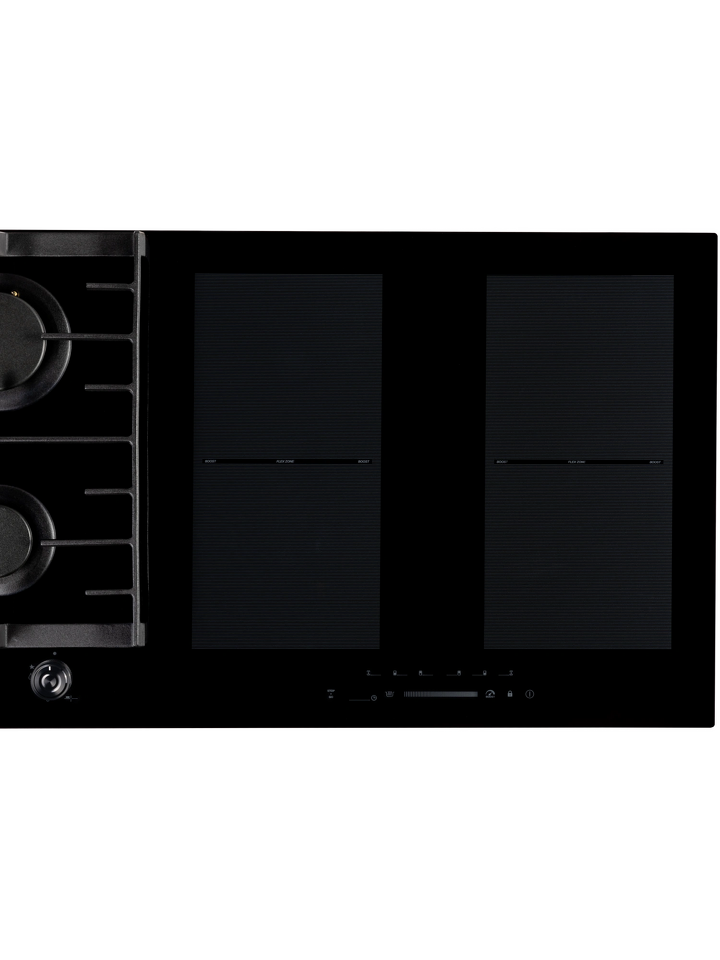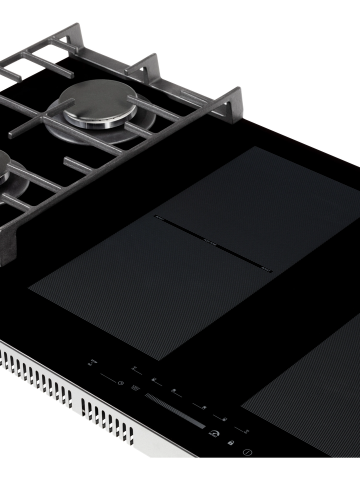 Четыре индукционные зоны легко справляются с повседневными и сложными кулинарными задачами. Система объединения зон превращает две отдельные в единую расширенную зону нагрева — это особенно удобно для приготовления в посуде большого диаметра или нестандартной формы.