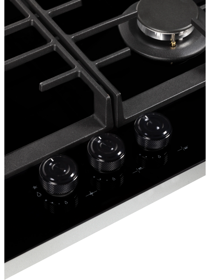 Для приготовления на газе предусмотрены три конфорки с автоматическим электророзжигом, в том числе горелка WOK. Ее тройное пламя позволит справиться с азиатскими блюдами и быстрым разогревом или кипячением. За безопасность отвечает система газ-контроля, перекрывающая подачу газа при затухании пламени.