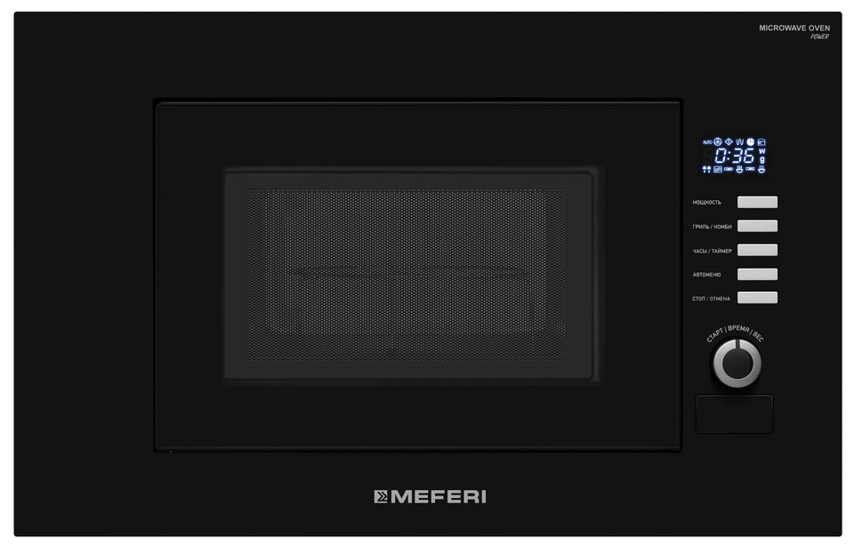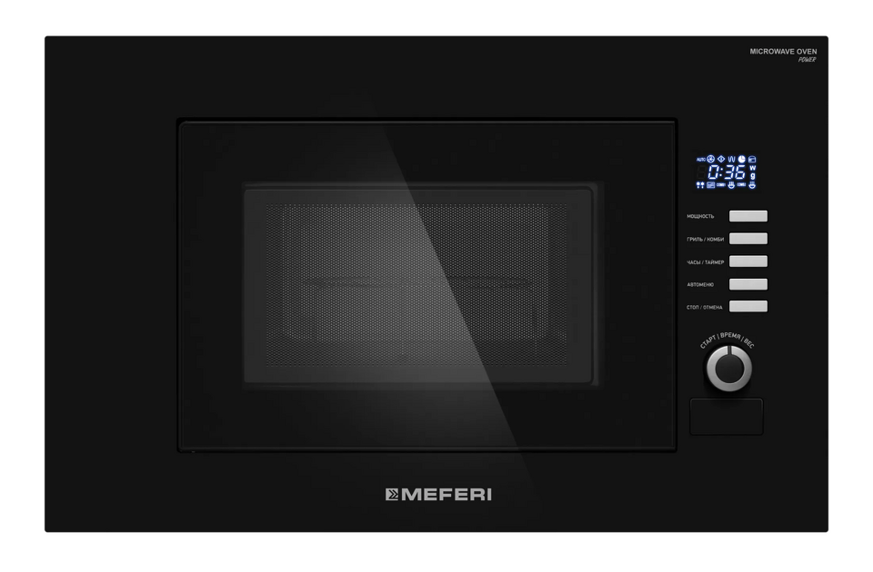 Микроволновая печь MEFERI MMO6020BK SLIM POWER — это стильное и мощное решение для вашей кухни, объединяющее современные технологии и удобство использования.Компактная конструкция для встраивания: Благодаря небольшим габаритам микроволновую печь можно легко встроить в верхнюю полку кухонного гарнитура, оптимально используя пространство.Максимальная мощность 1200 Вт: Благодаря высокой мощности, эта модель обеспечивает быстрое и равномерное приготовление блюд, что значительно сокращает время приготовления.Компактные размеры и стильный дизайн: Размеры 595х329х382 мм делают эту микроволновку идеальной для любой кухни, а элегантный черный цвет с современным дизайном отлично впишется в интерьер.Комбинированное управление и дисплей: Удобное управление в сочетании с информативным дисплеем позволяет легко настраивать режимы и контролировать процесс приготовления.8 программ авто-меню + режимы разогрева и разморозки: Модель оснащена 8 автоматическими программами, включая настройку по весу, а также режимами разогрева и разморозки, что делает процесс приготовления максимально простым и точным.Гриль и решетка в комплекте: Встроенный кварцевый гриль и решетка позволяют готовить блюда с аппетитной корочкой, расширяя возможности кулинарных экспериментов.Разморозка по весу: Точная разморозка по весу обеспечивает равномерное и безопасное размораживание продуктов без лишних усилий.Таймер до 95 минут и кнопка быстрого старта: Продвинутые функции позволяют контролировать время приготовления и быстро запускать процесс разогрева блюд.Защита от детей и внутреннее покрытие из нержавеющей стали: Безопасность и легкость в уходе — важные преимущества этой модели.Диаметр поворотного стола 245 мм: Обеспечивает равномерное прогревание и размораживание больших порций.