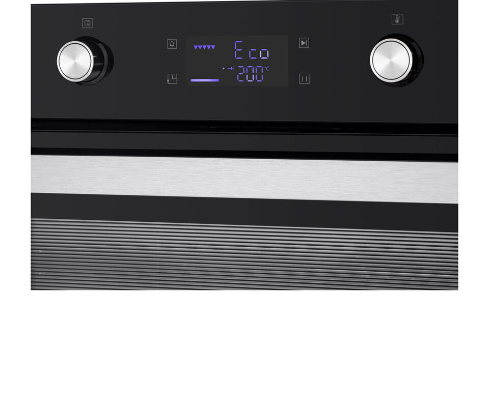 Комбинированное управление реализовано в виде сенсорного дисплея с подсветкой и поворотных ручек PUSH PULL, которые легким нажатием убираются внутрь корпуса. Можно выбрать режим работы, температуру (50°-250°C), установить таймер и блокировку от детей. В данной модели есть 9 режимов работы: традиционный нагрев, конвекционный нагрев, полный гриль, ЕСО, нижний нагрев, половинный гриль, разморозка, конвекция с грилем, освещение.