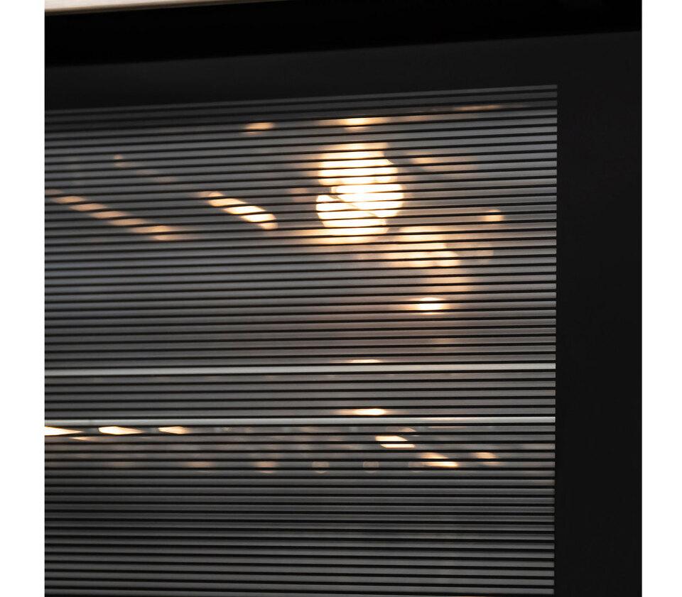Трамп-линии нанесены на внутреннем стекле для создания визуального эффекта непрозрачности фасада: при выключенном освещении не видно посуду, находящуюся внутри духовой камеры, а при включенном освещении можно в деталях рассмотреть весь процесс готовки.