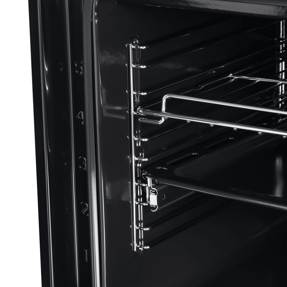 Объем 71 л при стандартной ширине 60 см позволяет готовить одновременно несколько блюд, разместив решетку или противень на одном из 6-ти уровней боковых направляющих. Одни из уровней оснащен удобными телескопическими направляющими. Внутреннее покрытие камеры выполнено из специальной легкоочищающейся эмали черного цвета.