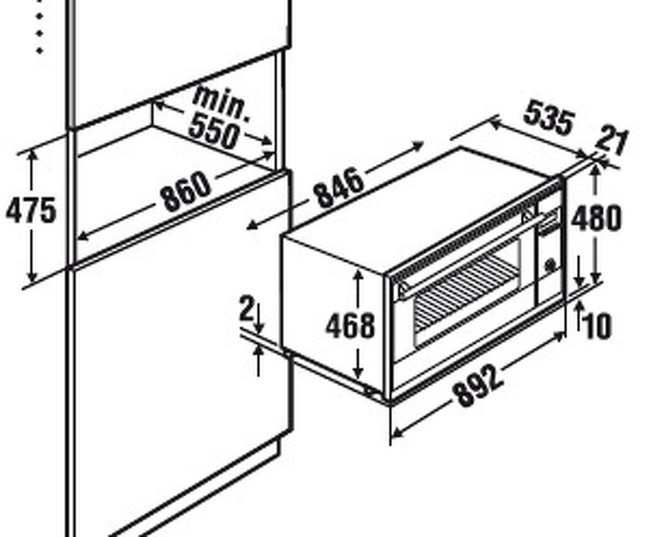 Размеры ниши для встраивания (Ш x В x Г): 860 x 475 x 550 мм