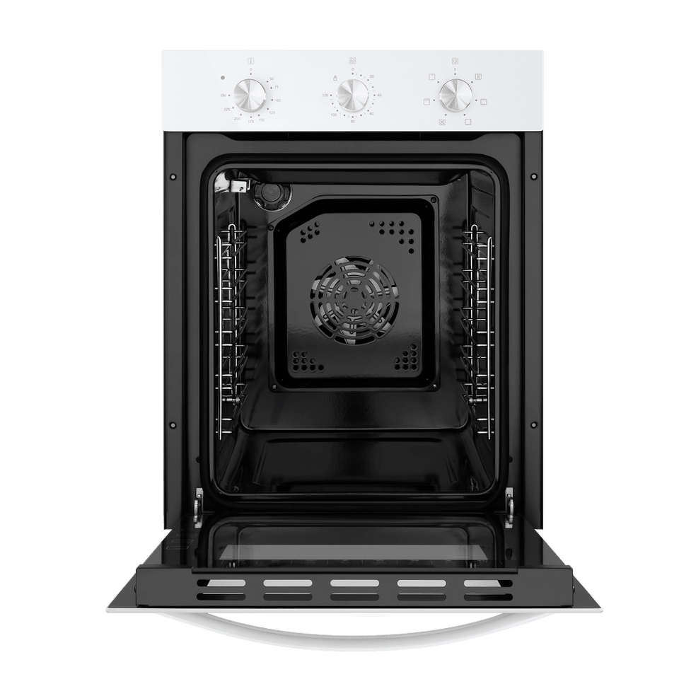 Механическое управление работой духовки осуществляется поворотными ручками. Можно установить таймер (до 120 мин), выбрать температуру (50°-250°C) и один из 7-ми режимов работы: внутреннее освещение, традиционный нагрев, большой гриль, конвекция с нижним нагревом, нижний нагрев, конвекционный нагрев, малый гриль.