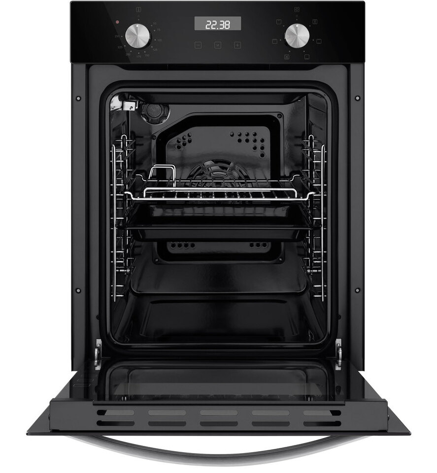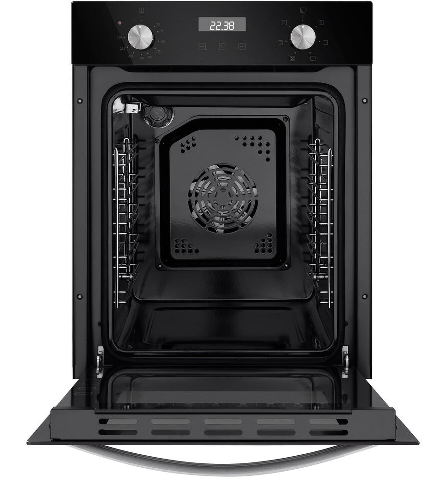 Компактный электрический встраиваемый духовой шкаф объемом 51 л и шириной всего 45 см позволяет готовить ваши любимые блюда, разместив решетку или противень на одном из 5 уровней боковых направляющих. Внутреннее покрытие камеры выполнено из специальной легкоочищающейся эмали черного цвета.