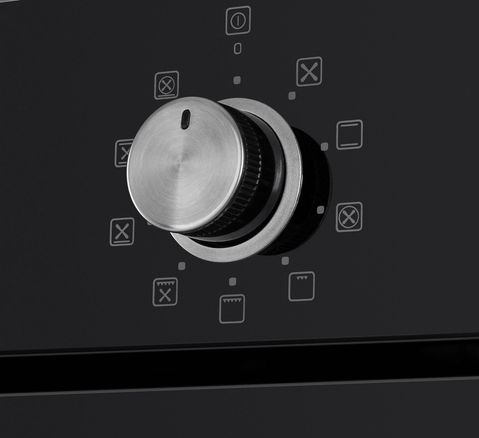 Комбинированное управление реализовано в виде сенсорного дисплея и поворотных ручек PUSH PULL, которые легким нажатием убираются внутрь корпуса. Можно выбрать режим работы, температуру (50°-250°C), установить таймер и блокировку от детей. В данной модели есть 9 режимов: верхний/нижний нагрев, усиленная конвекция, гриль/верхний нагрев/конвекция, разморозка, гриль/верхний нагрев, гриль, конвекция с нижним нагревом, нижний нагрев, интенсивная выпечка, освещение.