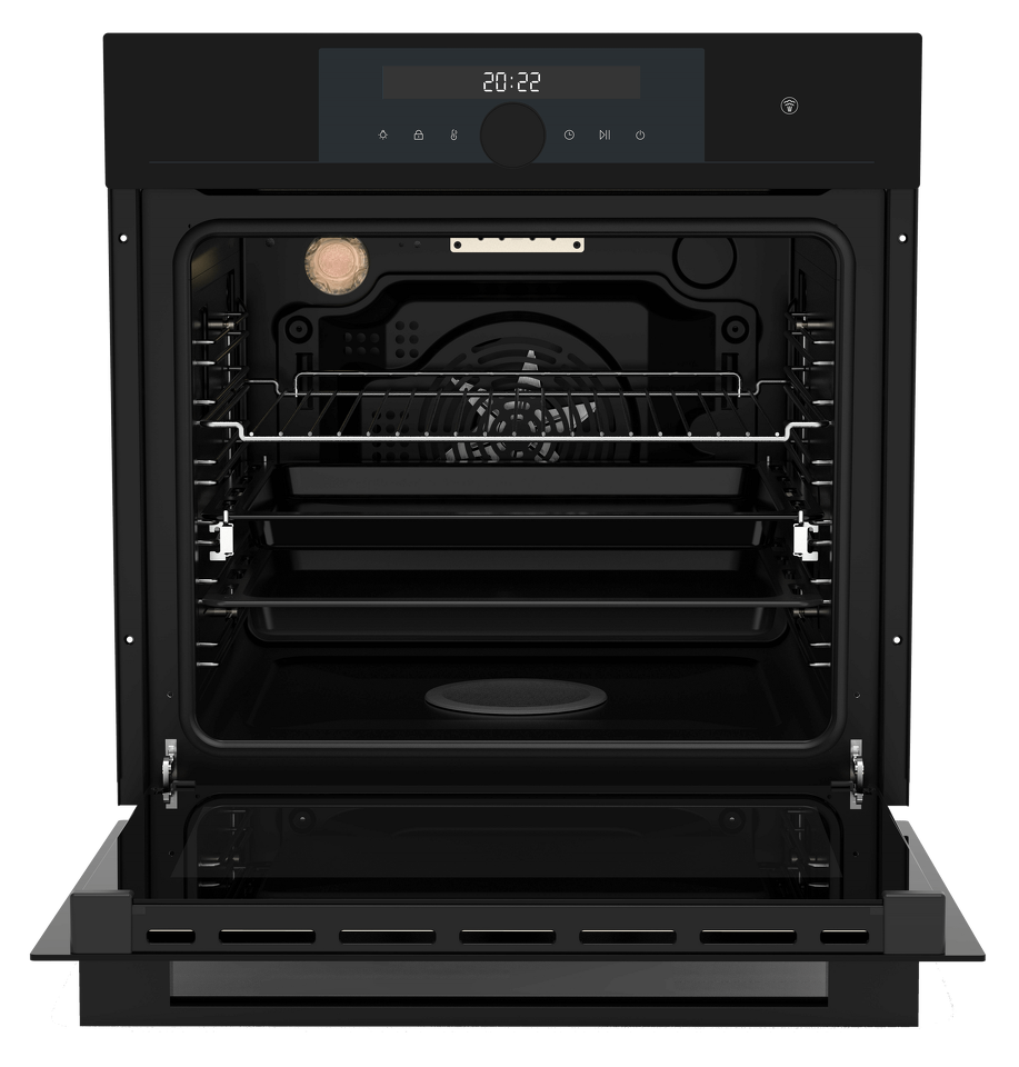 Духовой шкаф HOX-FP5RAGB серии Pacific5 имеет обновленную систему управления: сенсорная панель добавляет удобства в уходе, а поворотный переключатель, помимо своего расширенного функционала, является еще и лаконичным элементом дизайна. Особенностью этой модели является режим приготовления на пару: прием настоящих профессионалов, чтобы сделать блюдо сочнее и полезнее. Кроме того, духовой шкаф оборудован выдвижными телескопическими направляющими, функцией акваочистки и тройным остеклением дверцы, что делает использование и невероятно комфортным, и безопасным.