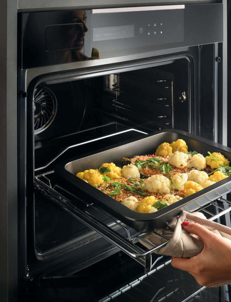 Духовой шкаф Haier HWO60SM5S5B1H — настоящий современный шеф-повар: встроенный парогенератор обеспечивает концентрацию пара до 75%, и это отлично подойдет для приготовления как выпечки, так и мяса, рыбы или овощей, сохраняя сочность и полезные свойства продуктов. Для каждого типа продуктов предусмотрен свой паровой режим, помимо стандартных и комбинированных программ приготовления. А сенсорная панель управления и каталитические панели значительно упростят уход и очистку за духовым шкафом.