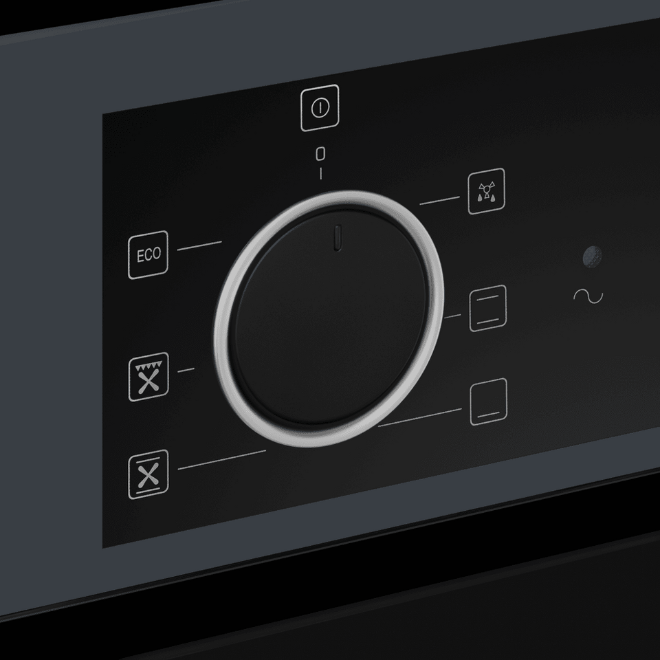 Управление происходит при помощи утапливаемых ручек PUSH PULL, увеличенного размера для комфортного использования, которые легко убираются внутрь корпуса после использования, что делает уход за лицевой панелью шкафа максимально удобным.