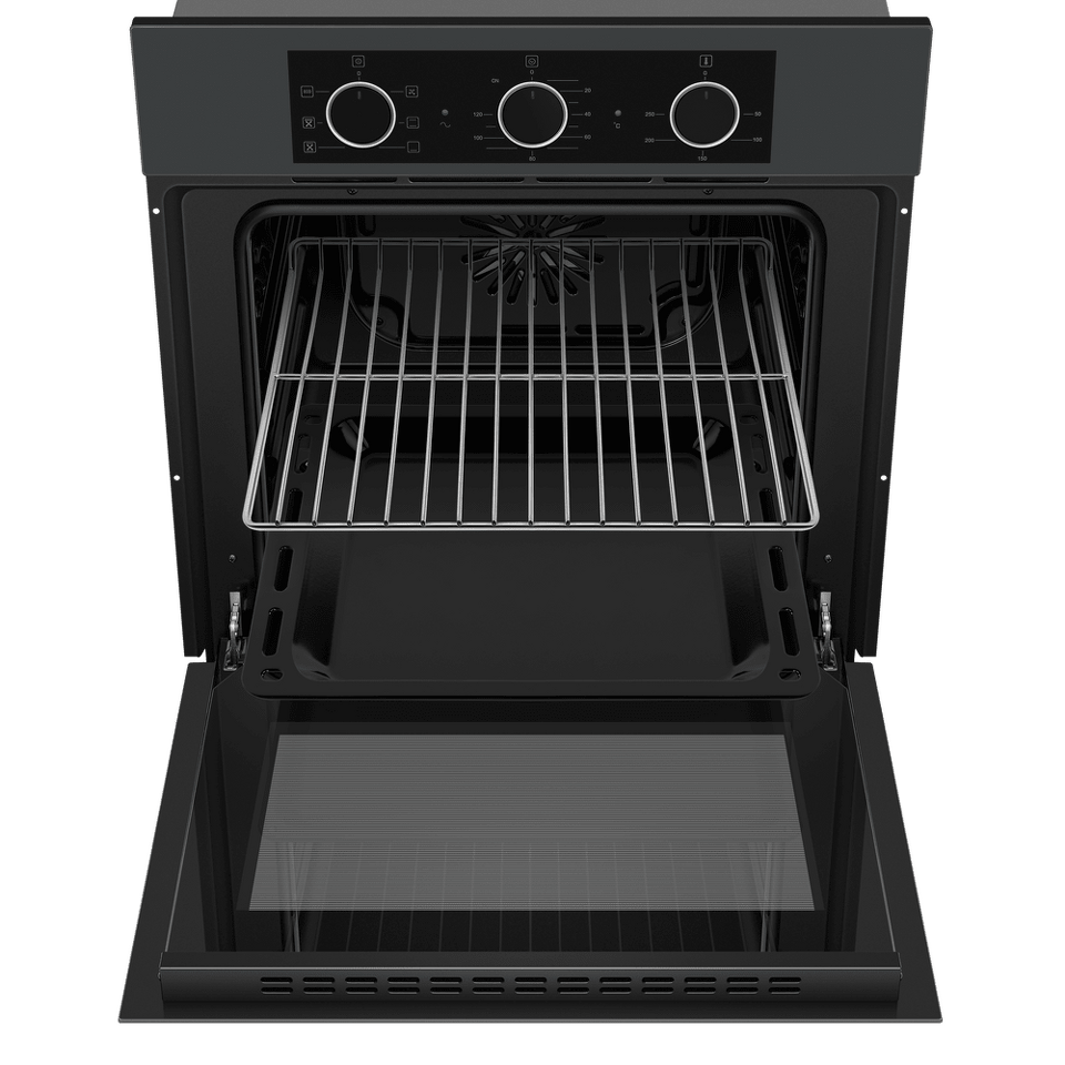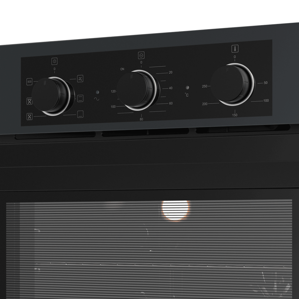 Дверца духового шкафа оснащена тройным стеклом - это гарантия медленного нагревания внешнего стекла, что создает холодный фронт и делает процесс приготовления безопасным исключая возможность ожога при касании.