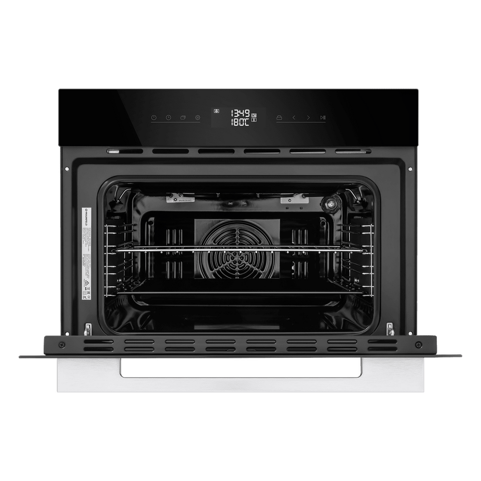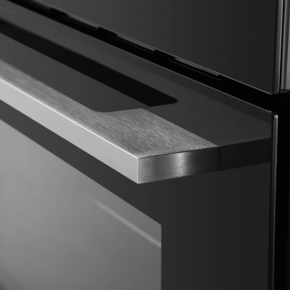 Фронтальная панель сделана из высококачественного жаропрочного стекла . Цельнометаллическая ручка дверцы из матированной нержавеющей стали лаконично поддерживает общий стиль и не нагревается во время готовки.